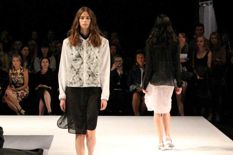 Ksenia Schnaider stands close to her theme during the next season - simple minimalistic clothes with prints of pixels. What I liked the most in her collection was the presence of classical style and black&white colors in designs.
